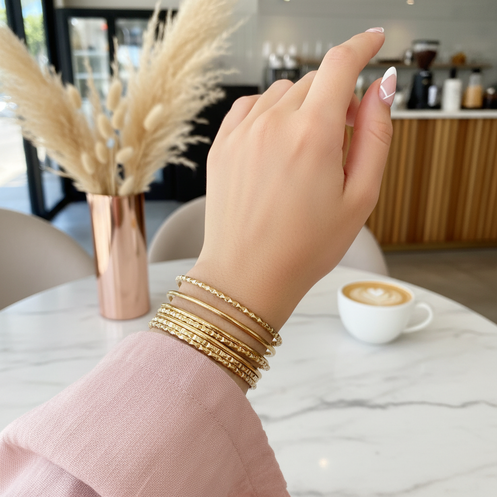 طقم متعدد القطع - عادةً 7 أساور قابلة للتكديس