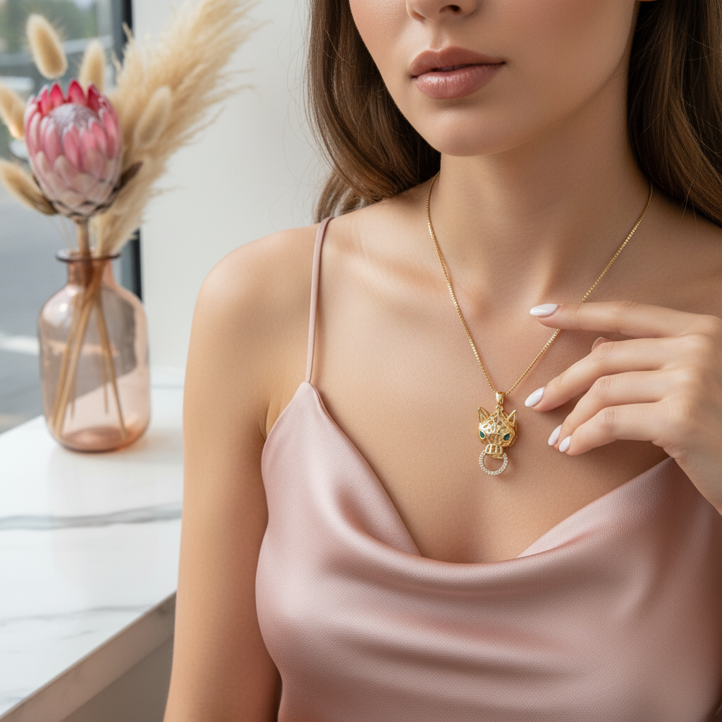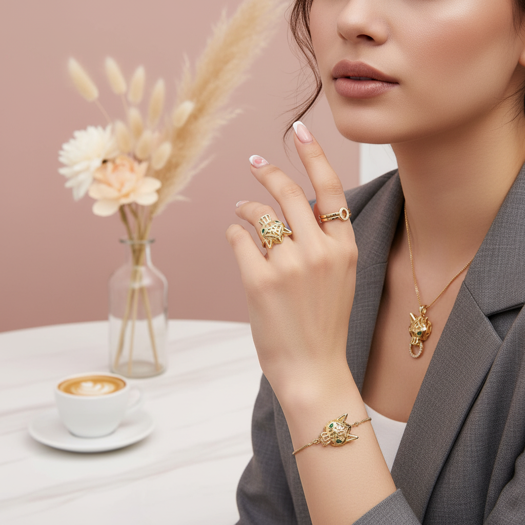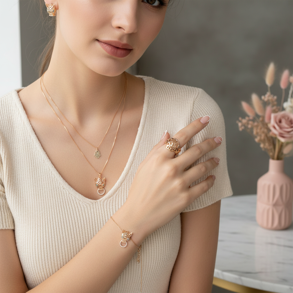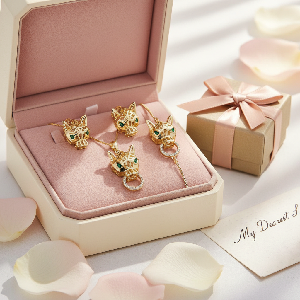 Hypoallergenic and durable, the Panthera set retains its brilliance while adding a bold touch to your style.